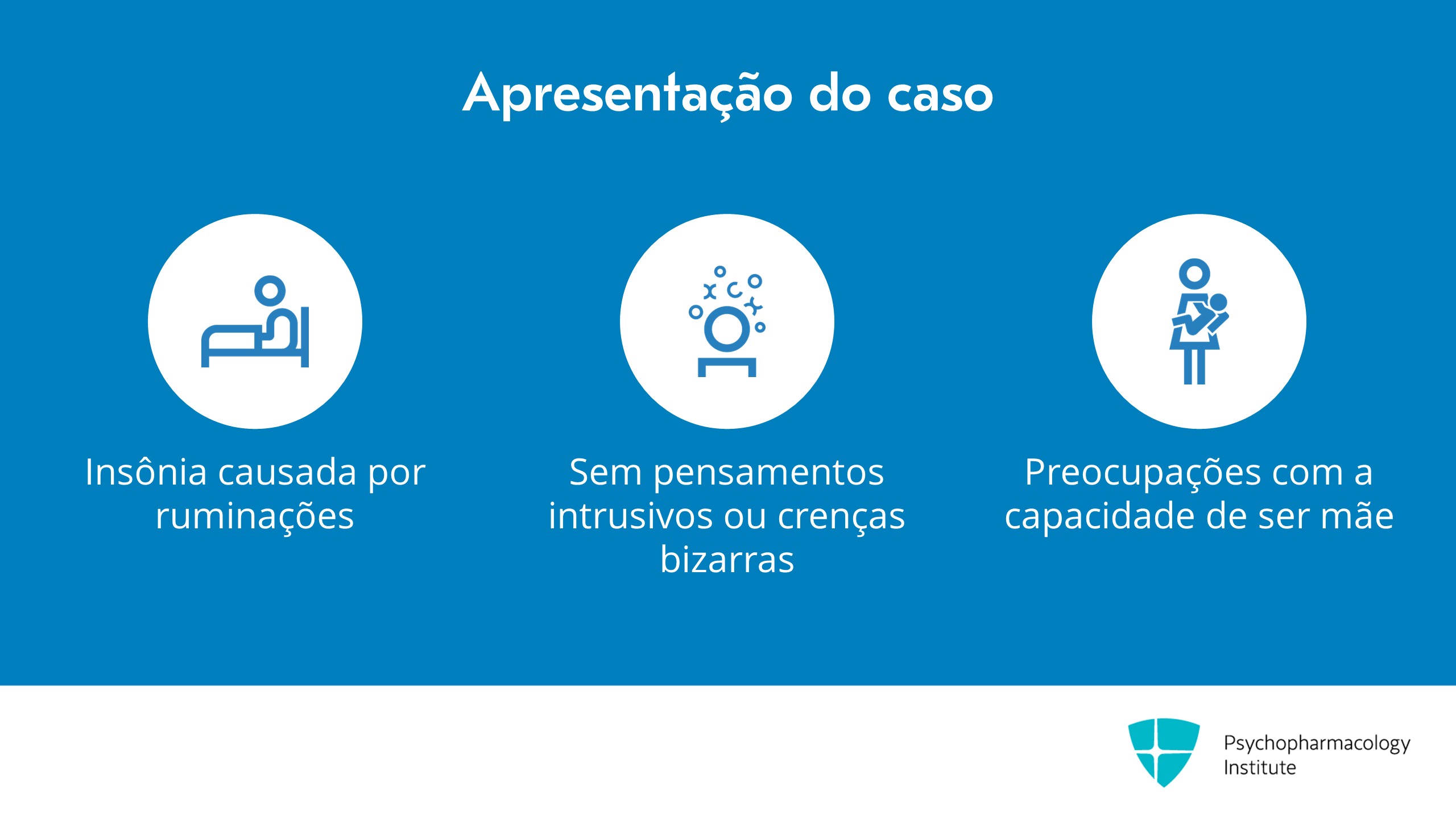 A dificuldade para dormir que ela nos relatou se deve a ruminações, não ao excesso de energia. Ela não está especialmente ativada. Não é que ela tenha uma necessidade menor de dormir. Ela simplesmente não consegue dormir porque tem pensamentos constantes em sua mente. Ela não tem pensamentos intrusivos nem crenças bizarras, mas está bastante convencida de que é uma péssima mãe e se pergunta se o bebê não estaria melhor sem ela. Ela nunca fez um teste de medicação anterior.