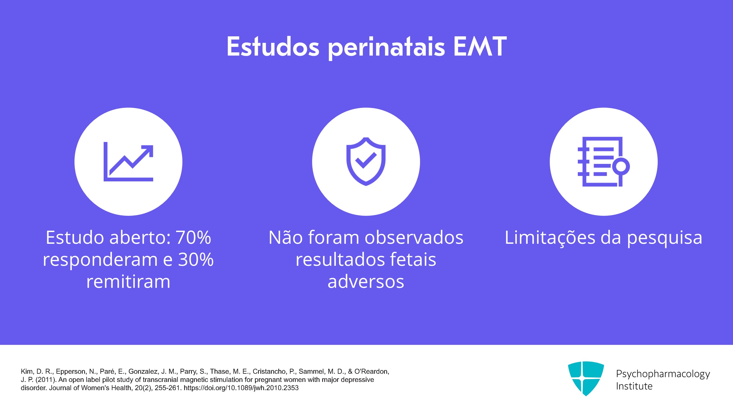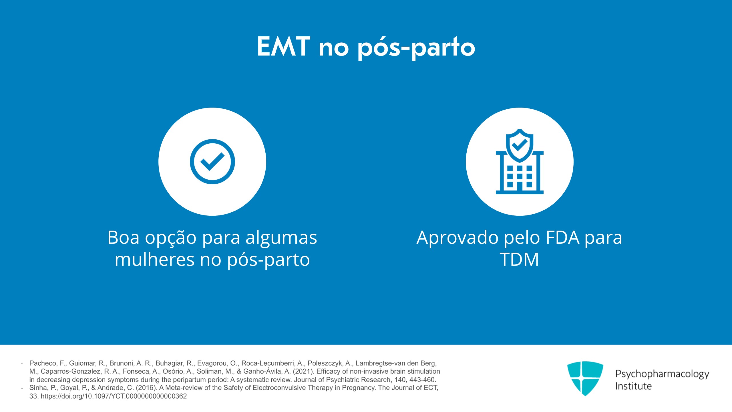 - A EMT pode ser promissora para a depressão pós-parto, com pequenos estudos mostrando boas taxas de resposta e sem efeitos fetais adversos.
